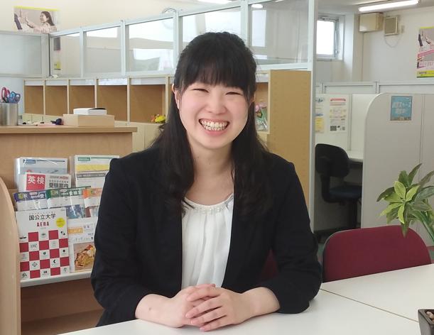- 最初は、人と関わる仕事がしたくて、教育業界に興味をもちました。 この業界は、未経験での挑戦でしたが、たくさんの生徒や保護者の方々と接する機会があるので毎日がとても新鮮です。教育を通して、色々な生徒に出会い、保護者や生徒から悩みを聞き、一緒に解決に向けて頑張っていく日々は、大変さや難しさももちろんありますが、それ以上にとても刺激的でした。